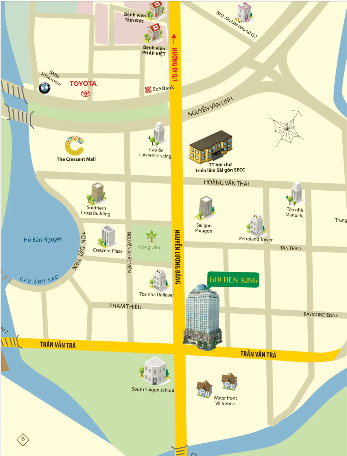 Khu phức hợp Officetel Quận 7 – Golden King tọa lạc tại mặt tiền đường Nguyễn Lương Bằng – tuyến đường đang được Thành phố triển khai nâng cấp, mở rộng tạo tiềm năng liên kết vùng thuận lợi, kết nối giao thương, kinh tế thông suốt đến các quận huyện trong Thành phố Hồ Chí Minh và các tỉnh lân cận.